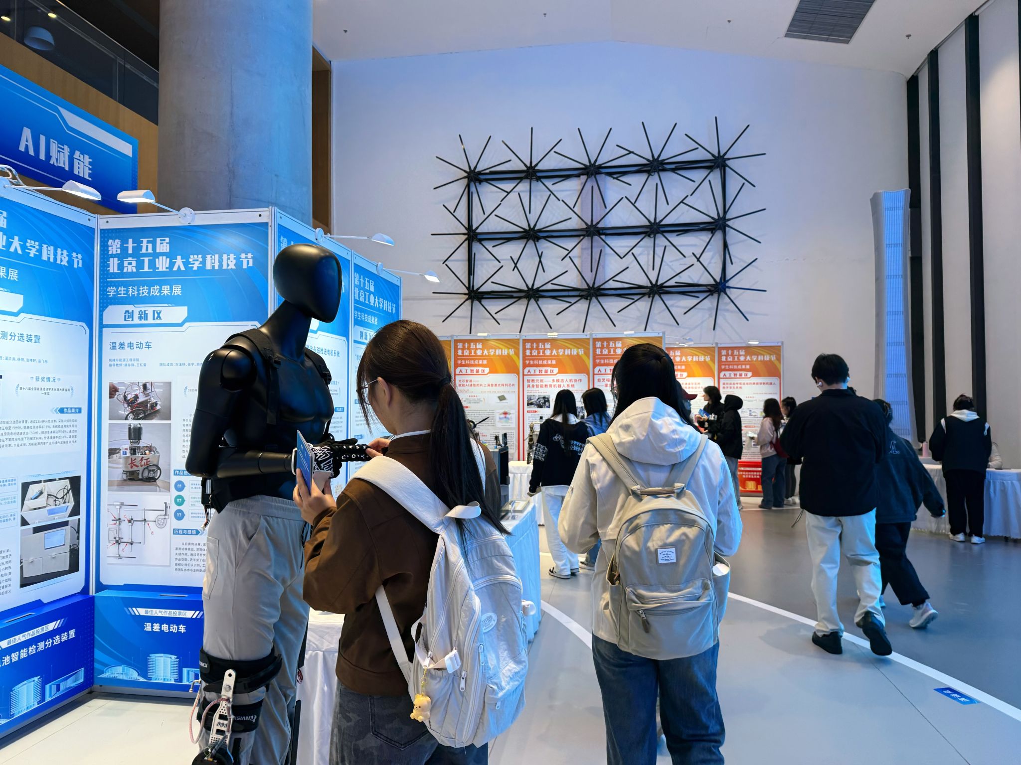 金秋送爽,学意正浓。2025年10月15日,第十五届永利官网科技节开幕式在逸夫图书馆春华广场(南广场)举行。本届科技节以“挺膺担当 青创未来”为主题,设“挑战引领”“AI赋能”“创新驱动”“创意无界”四大展区,集中展出员工科技成果70余件。3044AM永利集团官网于10月16-17日,分别组织150余名师生参观成果展,旨在借助跨学科交流平台,激发同学们的科研热情。