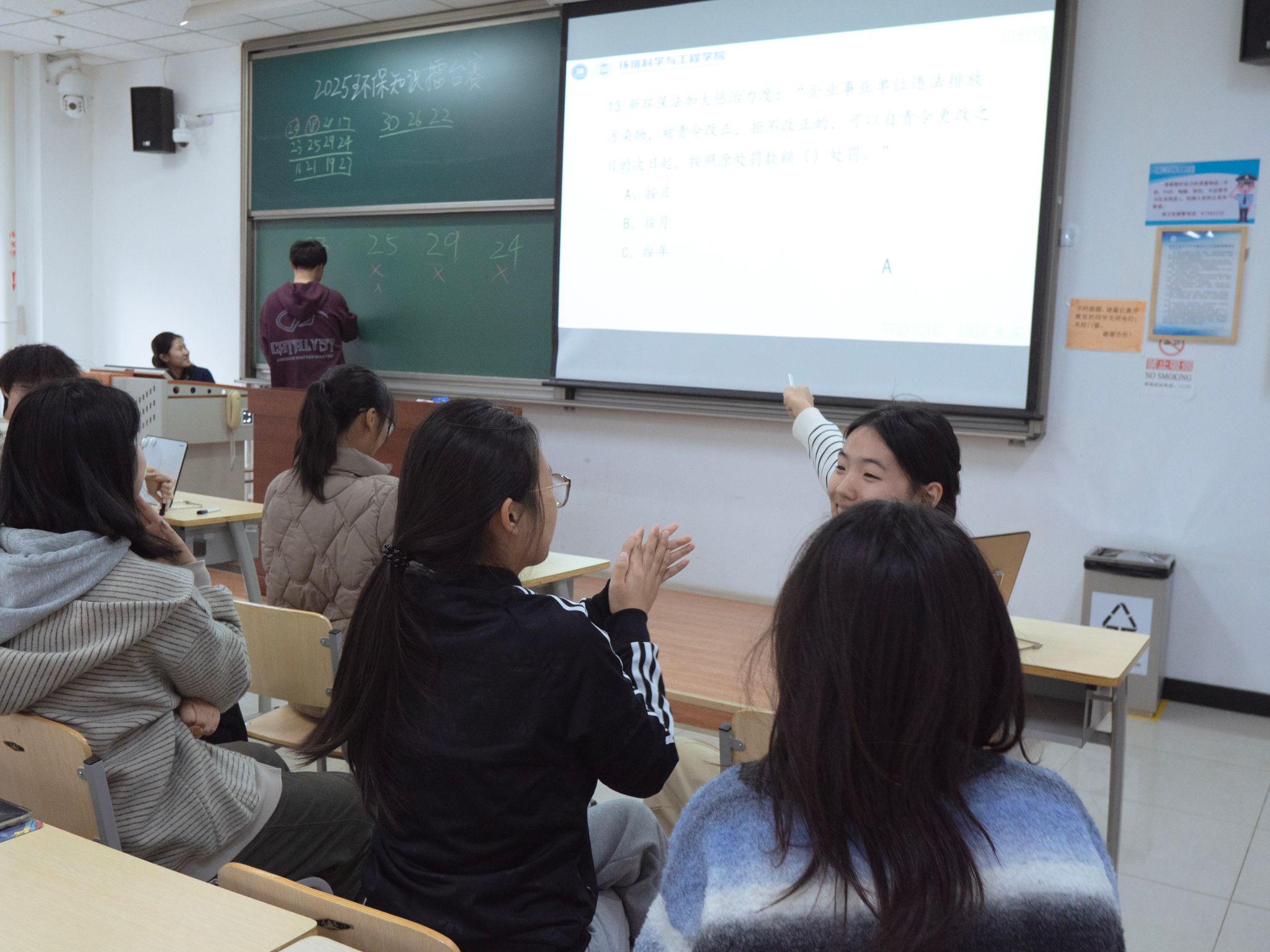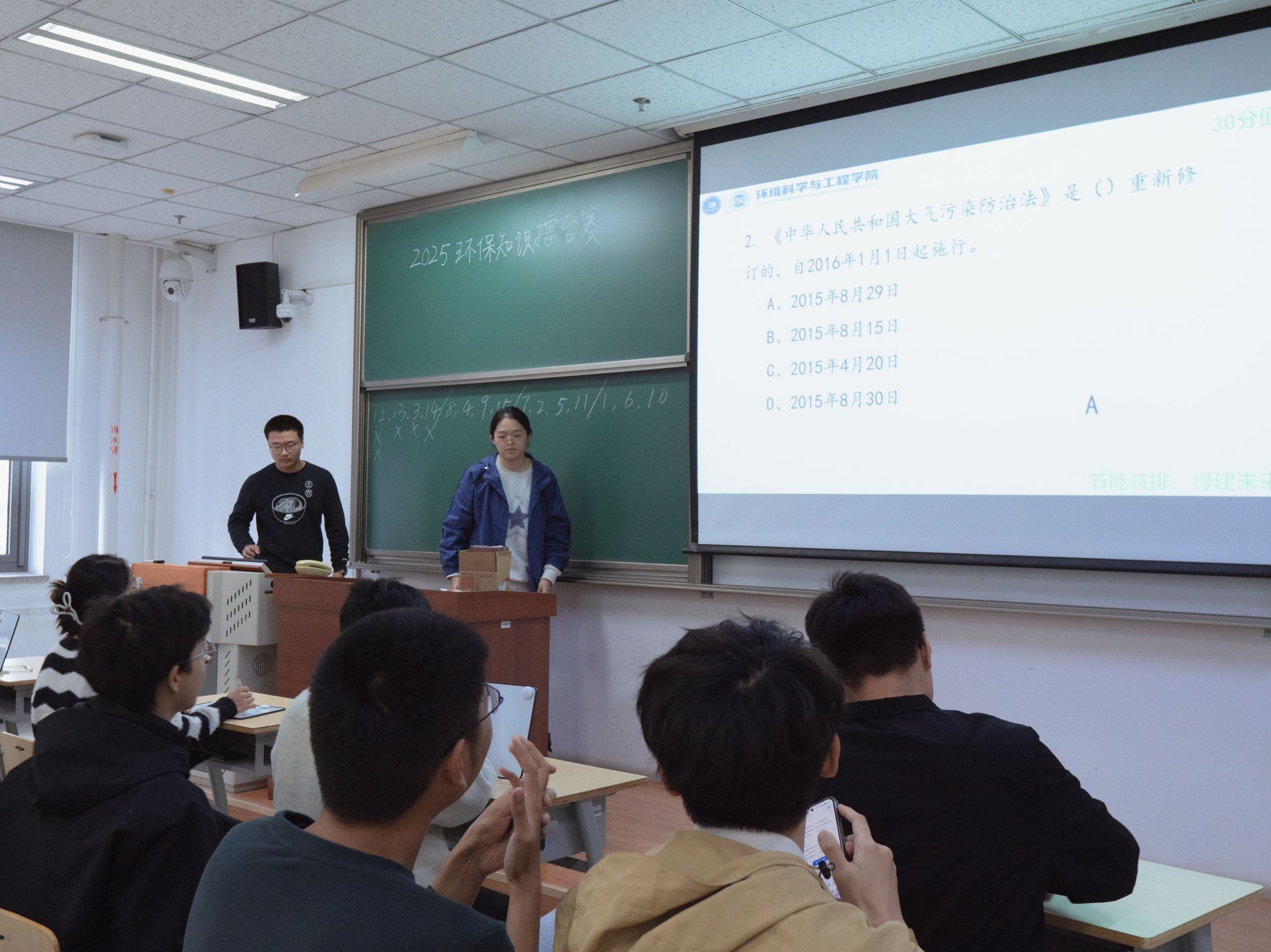 为深化员工专业知识储备,以实践行动践行 “绿水青山就是金山银山” 理念,10月22日下午,3044AM永利集团官网在四教 404、406教室成功举办校第十五届科技节学院特色活动——第四届“节能减排,绿建未来”环保知识擂台赛。来自学院各年级的30支队伍同台竞技,以赛会友、以赛促学,在紧张激烈的比拼中普及环保知识、凝聚生态共识,为校园科技节注入绿色活力。